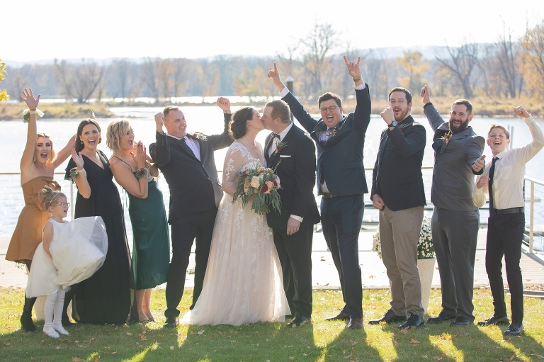 In the sunny backyard, along the river, guests took their seats and waited eagerly to see the bride and the groom. When Jason got a glimpse of his bride, his smile widened and his nervousness melted away. Ali and Jason became husband and wife in front of their friends and family on a bright sunny day in October, the ceremony was perfect. After the vows guests enjoy a champagne toast and then made their way to The Waterfront for more cocktails, socializing, dinner and one heck of a party. When the band kicked off, the dance floor filled, and Ali and Jason danced their wedding night away.